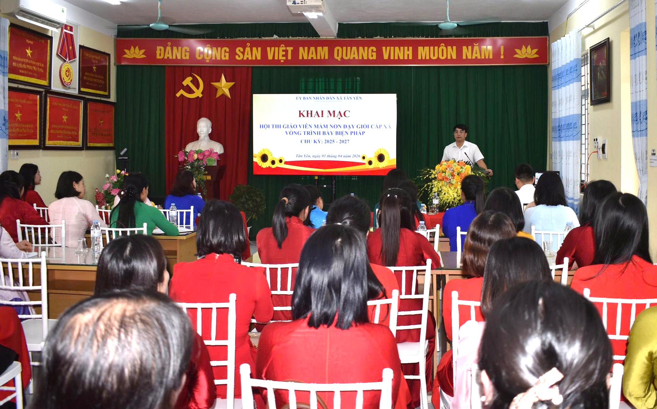Sáng ngày mùng 01/4, tại trường Mầm non Tân Yên, UBND xã Tân Yên tổ chức khai mạc hội thi giáo viên mầm non dạy giỏi cấp xã, vòng trình bày biện pháp, chu kỳ 2025-2027. Dự khai mạc có các đồng chí Thân Tuấn Anh, Phó Chủ tịch Thường trực UBND xã, Trưởng Ban Tổ chức hội thi; Nguyễn Hồng Khánh, Trưởng Phòng Văn hóa- Xã hội, Phó Trưởng Ban Tổ chức Hội thi.