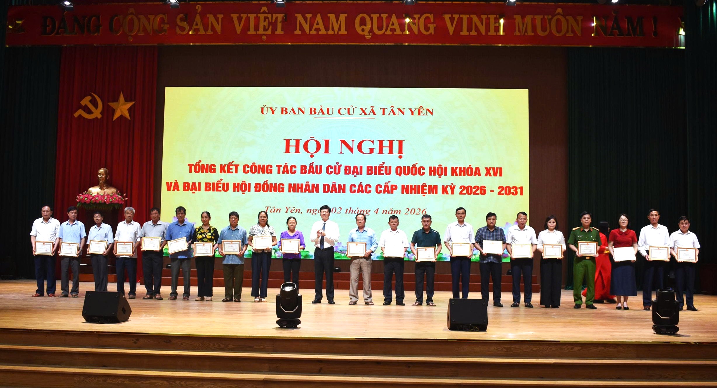 Chiều ngày 2/4, Ủy ban bầu cử xã Tân Yên tổ chức Hội nghị tổng kết công tác bầu cử đại biểu Quốc hội khóa XVI và đại biểu Hội đồng nhân dân (HĐND) các cấp, nhiệm kỳ 2026-2031.