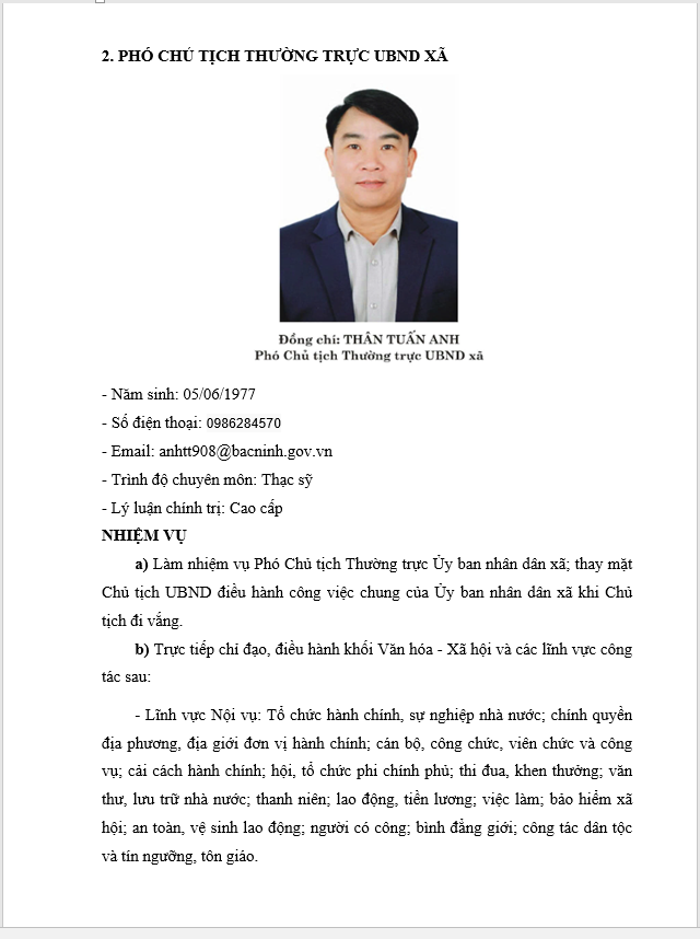 Tiểu sử và nhiệm vụ đảm nhiệm của các đồng chí lãnh đạo UBND xã Tân Yên